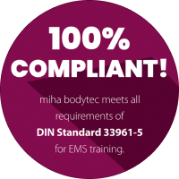 We exclusively utilize Miha Bodytec, the leading German manufacturer and global standard for EMS technology for over a decade. Our gear is 100% made in Germany and adheres to the strict DIN Standard 33961-5, ensuring the safest experience. We feature the latest i-body Smart Vests with an antimicrobial coating and enhanced compression pads for perfect, consistent electrode placement. New elastic stretch zones guarantee an impeccable fit, eliminating impulse interruptions. You can move completely freely and enjoy a powerful, hassle-free training session engineered for peak performance.