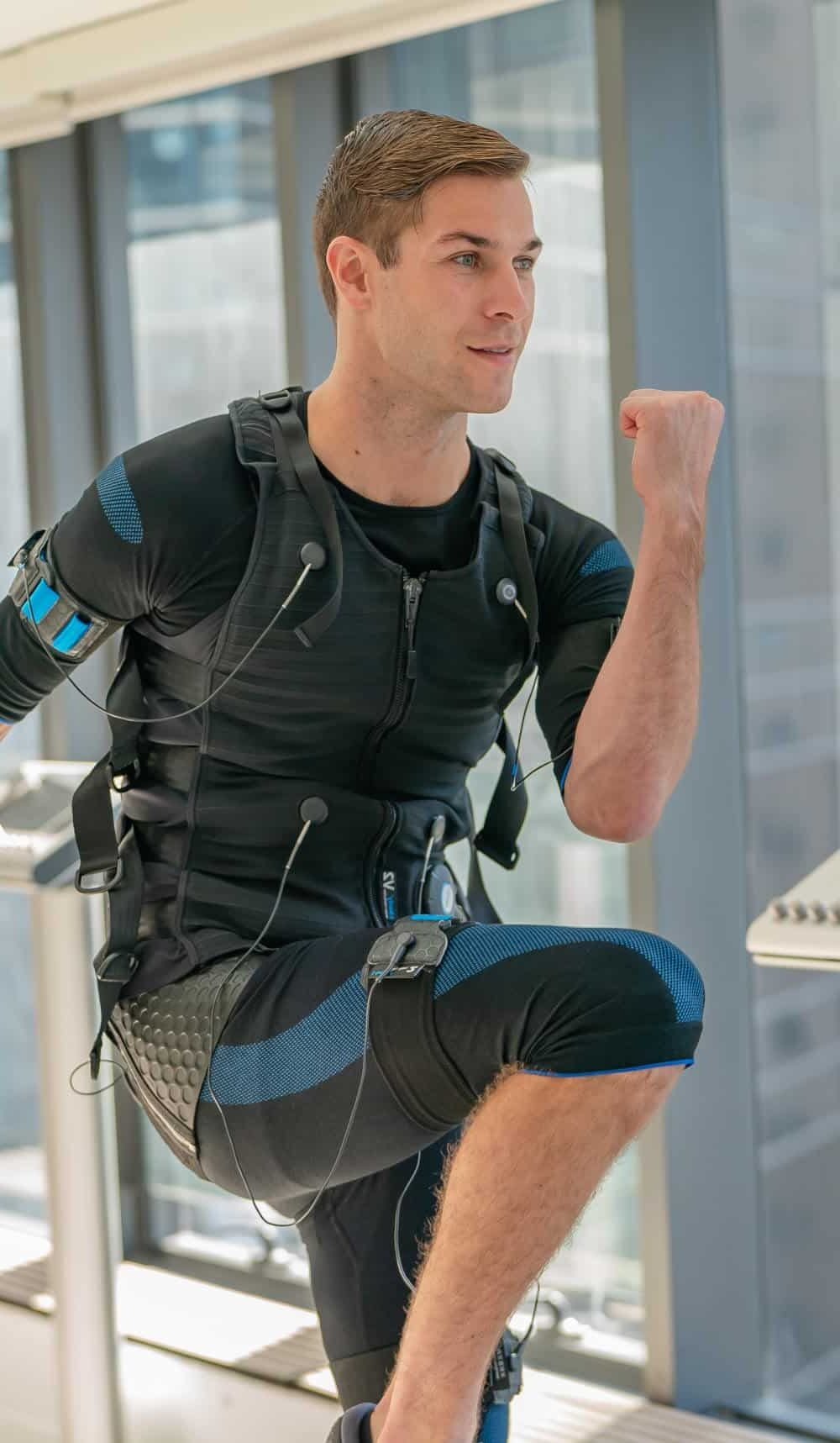 “EMS cuts down gym time to 20 MINUTES PER WEEK but delivers the same result as 2×90 minutes traditional gym routine.”